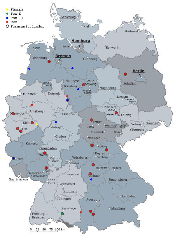 Damit Ihr recht leicht in der Lage seid, mal zu gucken, ob denn in Eurer Nähe eine C22er stationiert sind, habe ich für den deutschen Bereich nachstehende Karte vorbereitet. Duch Klick auf die Punkte bekommt Ihr nähere Informationen über C22-Flieger in dieser Region (einige funktionieren möglicherweise noch nicht richtig) - fürs Ausland ist noch unterhalb der Karte eine einfache Liste...